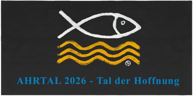 Für mich ein Grund das Symbol Fisch mit den Wellen in einem Logo zu Bildern aus dem Ahrtal festzuhalten. Das gewählte Fischzeichen hat dazu noch eine tiefere Bedeutung: In den Zeiten der Christenverfolgungen war dieses Zeichen (ISCHYS=Fisch=geheimes Erkennungszeichen der Christen untereinander) ein verstecktes Symbol, mit dem man vorsichtig zu erkennen geben konnte, dass man ein Anhänger der neuen Religion war. Es war und ist also ein Zeichen der Hoffnung, des Glaubens. Was könnte man im Ahrtal zurzeit besser gebrauchen als ein wenig Hoffnung, ein wenig Glauben an eine sichere Zukunft. Dafür sollte die zeit nun gekommen sein.